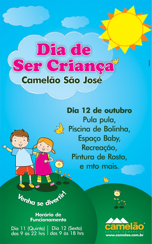 Camelão abrirá no dia das crianças com várias atraçõesNeste ano o feriado de 12 de outubro (Dia das crianças) será diferente no Camelão de São José, que abrirá das 9h às 18h. A rua Wanderlei Junior será fechada especialmente para o Camelão que contará com diversas atrações para as crianças, dentre elas: